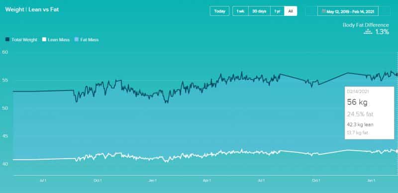 本当は体脂肪をもう少し落とした方が良いのかもしれませんが、これも別に数値にこだわりはないので、体調さえよければ、問題はありません。
