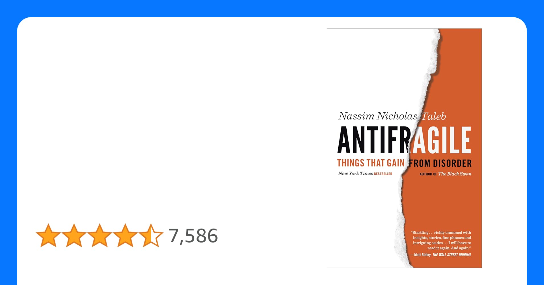 7 | Antifragile: Things That Gain from Disorder | Nassim Nicholas Taleb (著) | Random House | Antifragile is a standalone book in Nassim Nicholas Taleb’s landmark Incerto series, an investigation of opacity, luck, uncertainty, probability, human error, risk, and decision-making in a world we don’t understand. The other books in the series are Fooled by Randomness, The Black Swan, Skin in the Game, and The Bed of Procrustes. | 1,400 | ABDの課題本 | 338.18 |