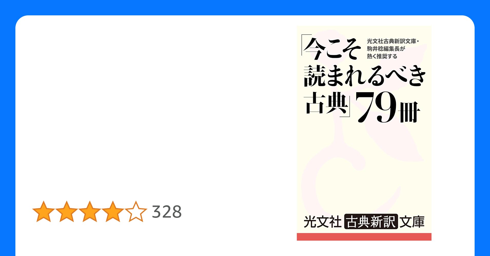 3 | 光文社古典新訳文庫・駒井稔編集長が熱く推奨する「今こそ読まれるべき古典」79冊 Kindle版 | 光文社古典新訳文庫編集部 (著) | 光文社 | 「いま、息をしている言葉で」をキーワードに、2006年に創刊された「光文社古典新訳文庫」。ミリオンセラー「カラマーゾフの兄弟」など話題作を次々に世に送り出した、人気レーベルです。誰もが知る古典の名作から、知る人ぞ知る南米やアフリカ等の隠れた傑作までも、読みやすい新訳でお届けしています。このカタログ本では、編集長自らが厳選した「今読むべき79冊」をご紹介。 | 0 | 次に読む古典を探すため | 903 |