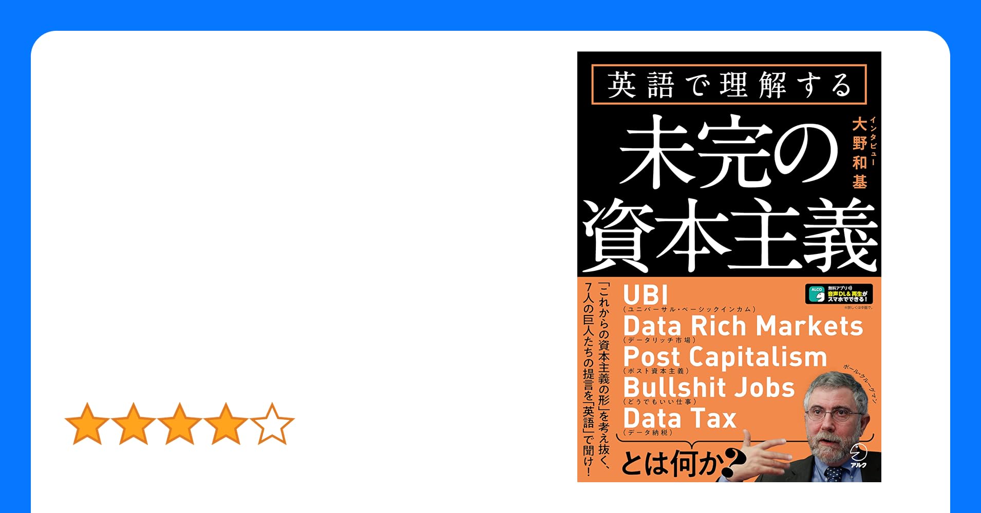 2 | [音声DL付]英語で理解する 未完の資本主義 Kindle版 | 大野 和基 (著) | アルク | テクノロジーは資本主義をどう変えるか? 我々は資本主義をどう修正するべきか? 国際ジャーナリスト・大野和基が、世界の「知の巨人」7人にインタビューし、「未完」のその先の姿を考える。『Voice』等掲載に加筆。 | 935 | 友人が読んでいた | 322.06 |