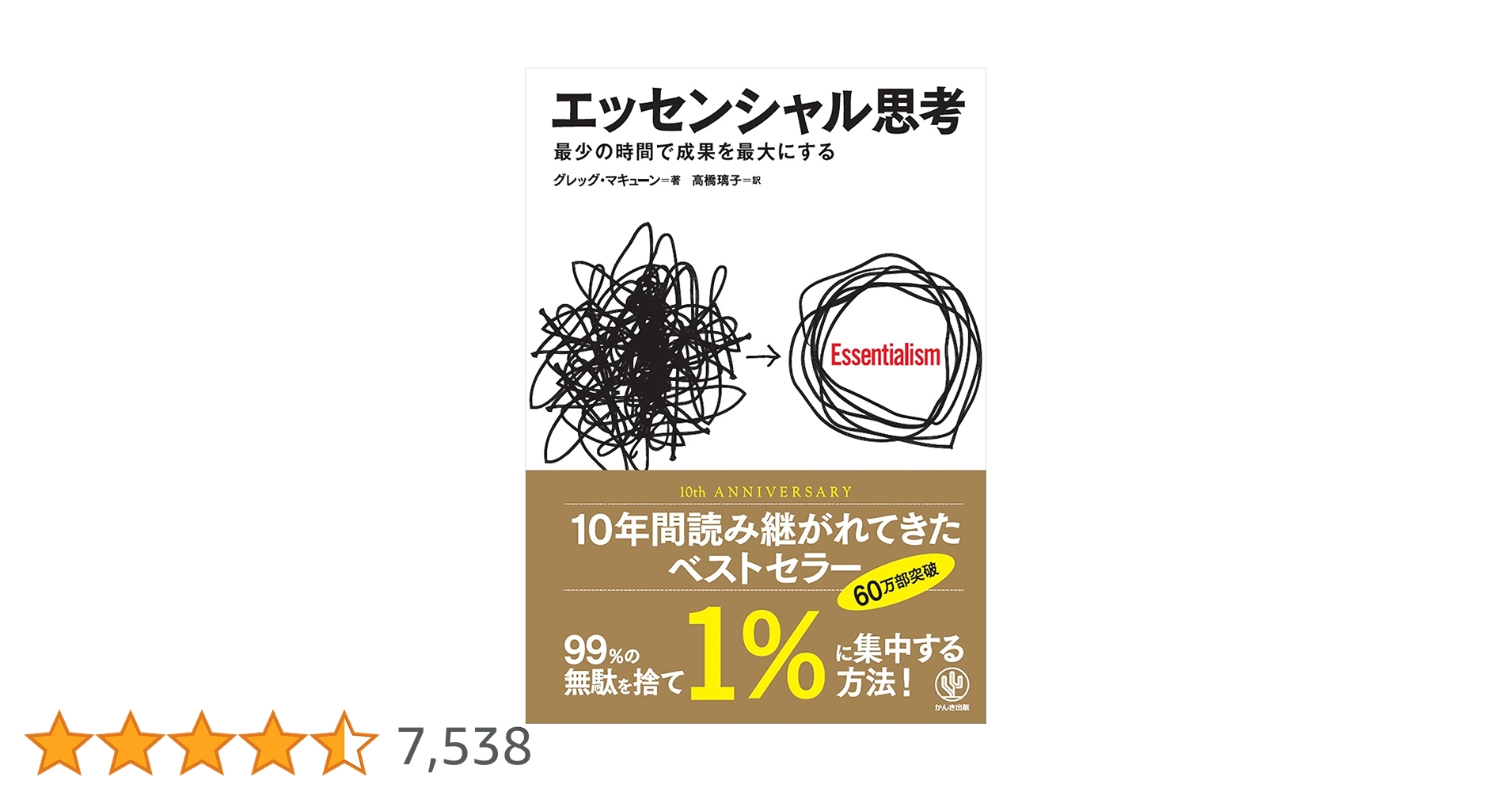 - 小林さん「エッセンシャル思考 最少の時間で成果を最大にする」グレッグ・マキューン(著)かんき出版