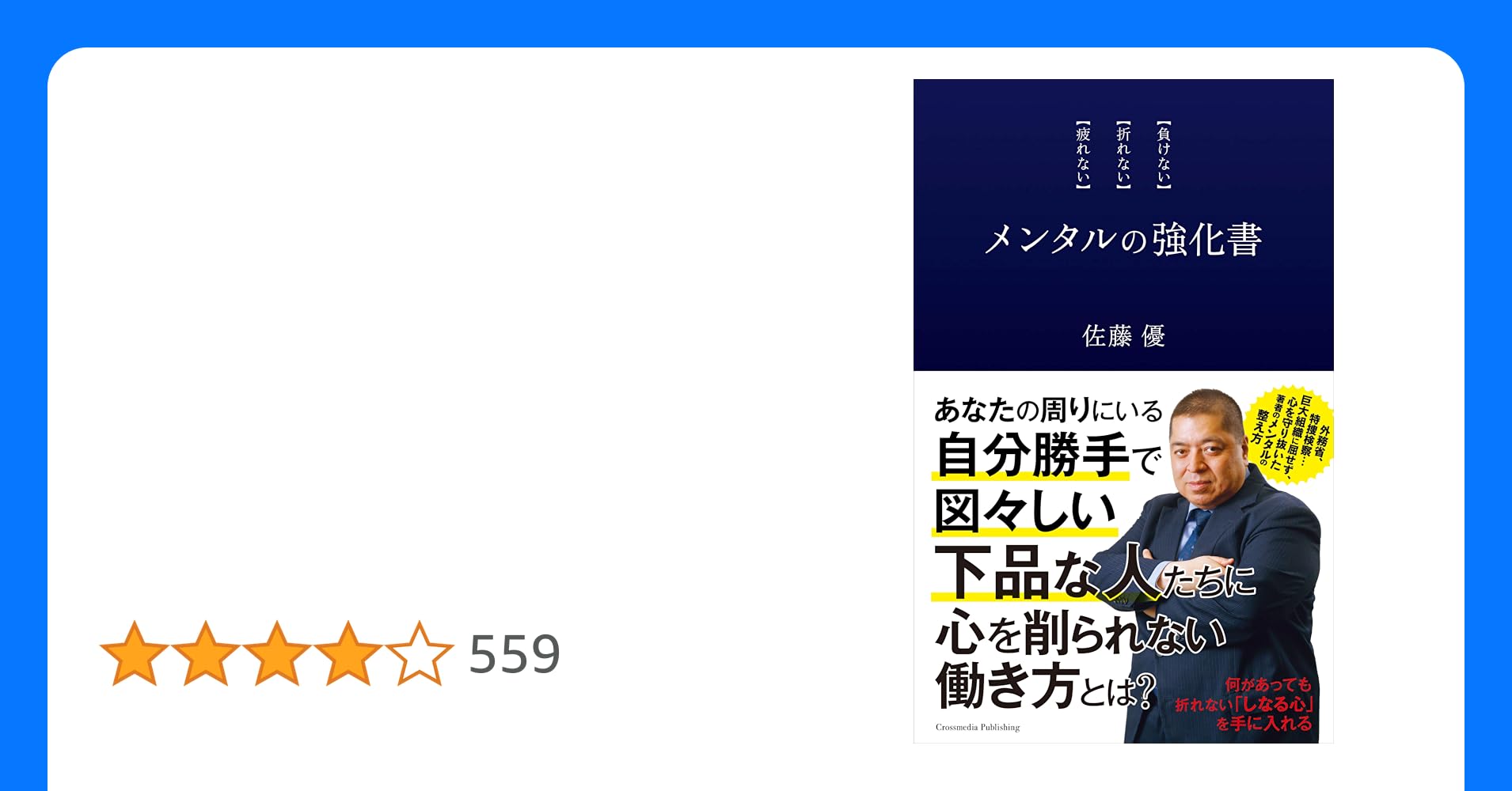 小林さん「メンタルの強化書 」佐藤優 (著) クロスメディア・パブリッシング(インプレス)