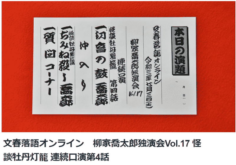 文春落語オンライン 柳家喬太郎独演会Vol.17 怪談牡丹灯籠 連続口演第4話