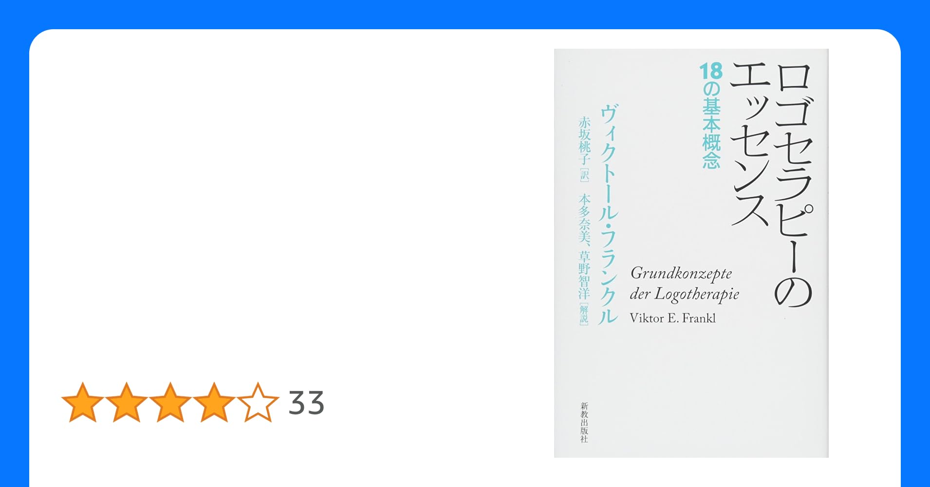 - りんさん「ロゴセラピーのエッセンス」ヴィクトール・フランクル (著), 赤坂桃子 (翻訳) 新教出版社