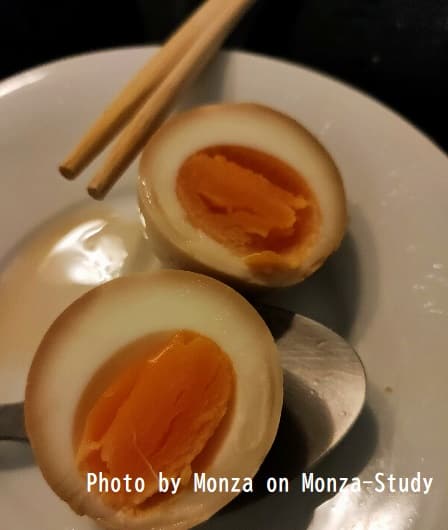 煮卵といってますが、煮ません。漬け込むだけです。だから正しくは「半熟卵のみりん醤油づけ」なんでしょうね。