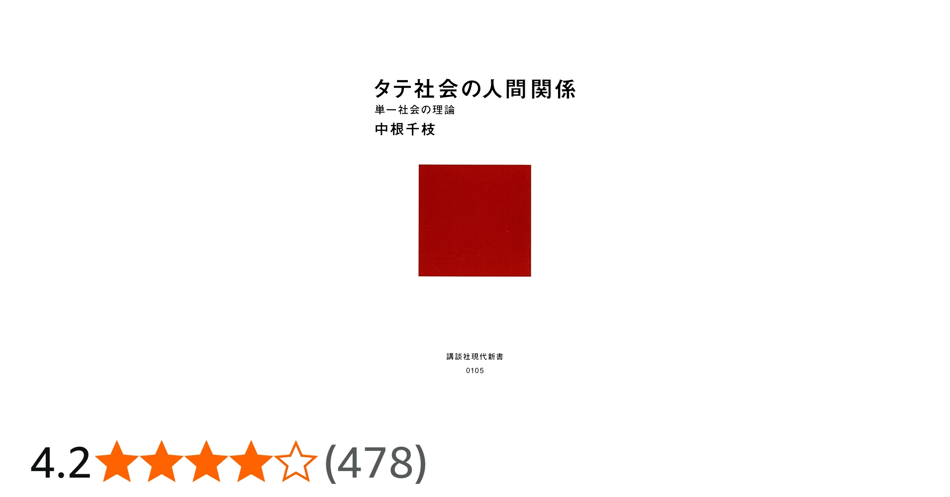 - もんざ (主催者) 「タテ社会の人間関係 単一社会の理論」(講談社現代新書) 中根千枝 (著)