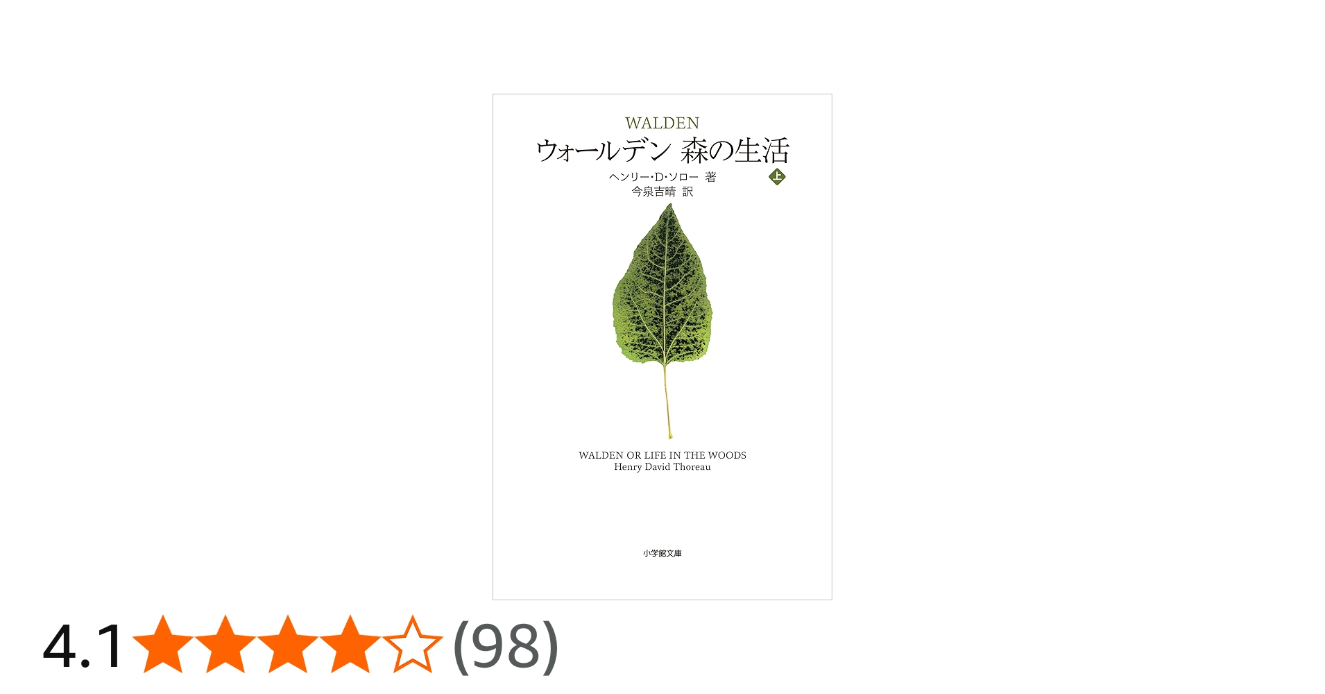<内容:アマゾン商品説明より> 「ウォールデン 森の生活 」小学館 ヘンリーD・ソロー (著) 今泉吉晴 (翻訳)