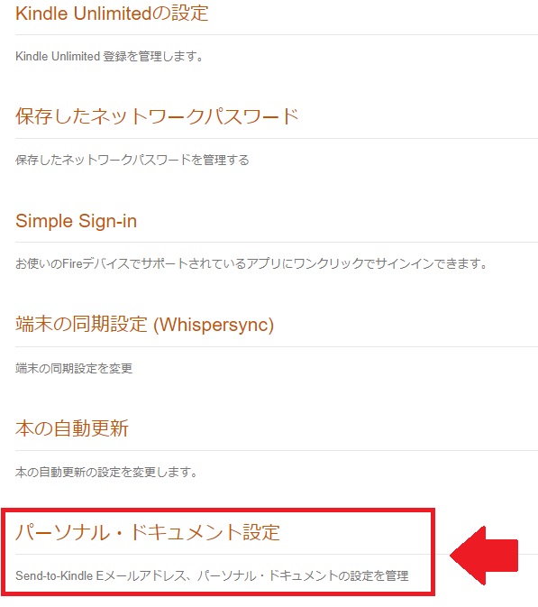 - SEND-TO-KINDLEのEメールアドレスを確認