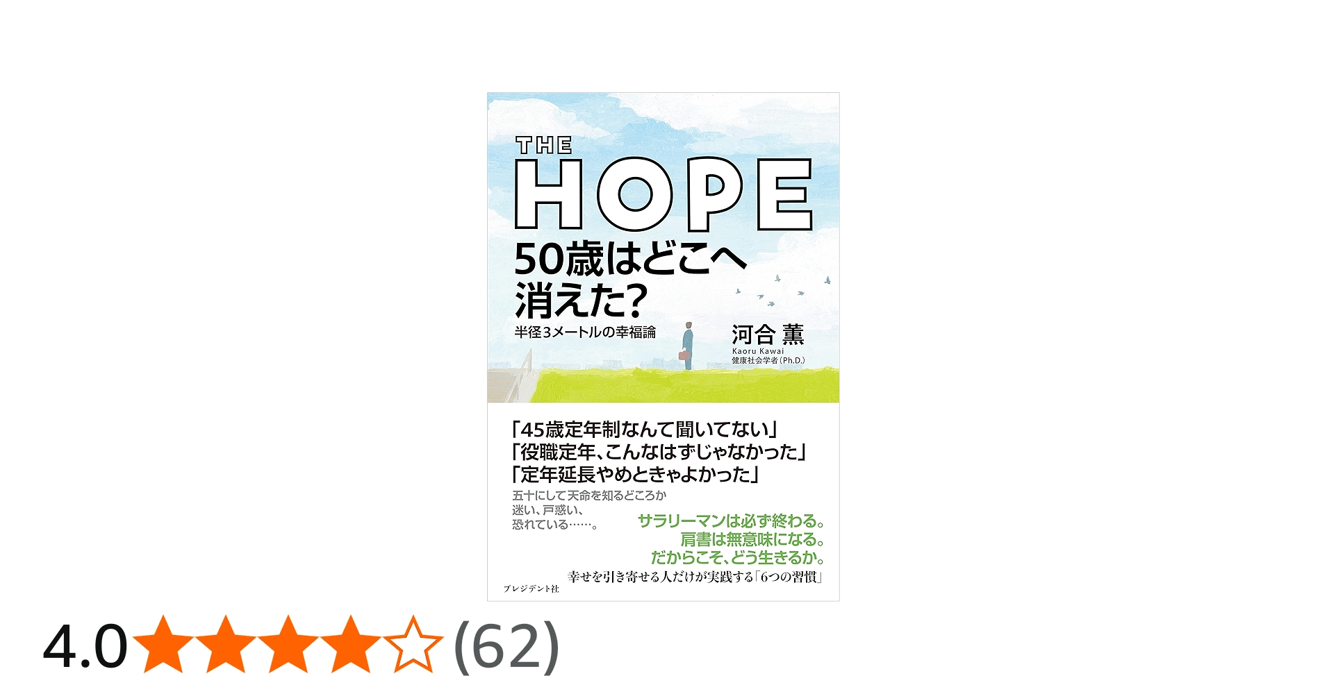 <内容:アマゾン商品説明より> 「THE HOPE 50歳はどこへ消えた?――半径3メートルの幸福論」(プレジデント社) 河合 薫 (著)