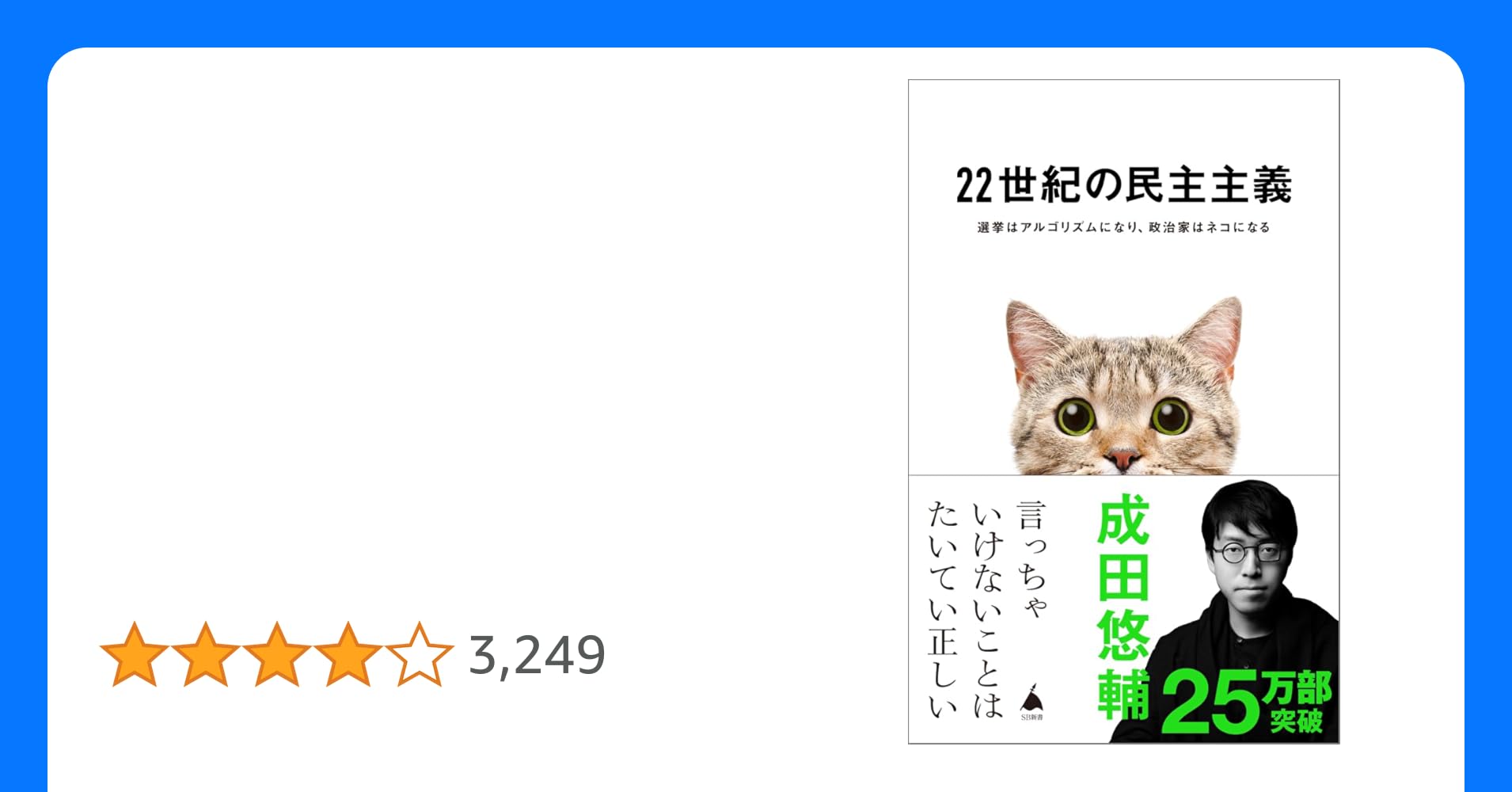 - よしざきさん「22世紀の民主主義 選挙はアルゴリズムになり、政治家はネコになる」 (SB新書) 成田 悠輔 (著)