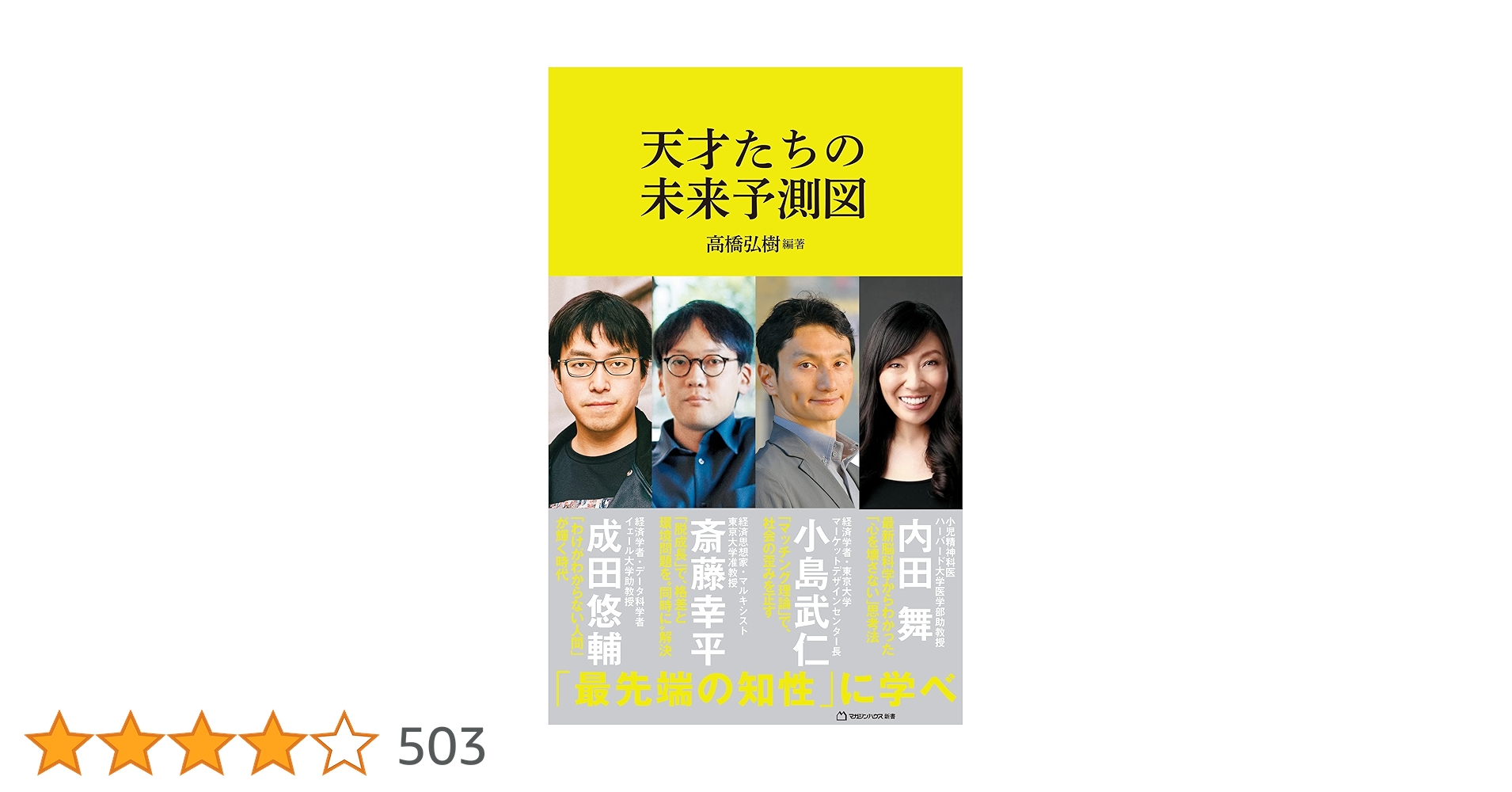 <内容:アマゾン商品説明より>「天才たちの未来予測図」(マガジンハウス新書)斎藤幸平 (著), 小島武仁 (著), 内田舞 (著), 成田悠輔 (著), 高橋弘樹 (編集)