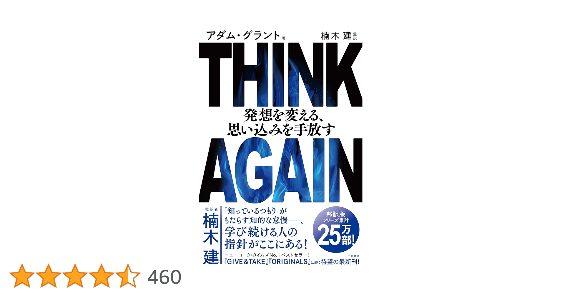 7.ゆりさん「THINK AGAIN 発想を変える、思い込みを手放す」by アダム・グラント (著), 楠木 建 (監修) 三笠書房