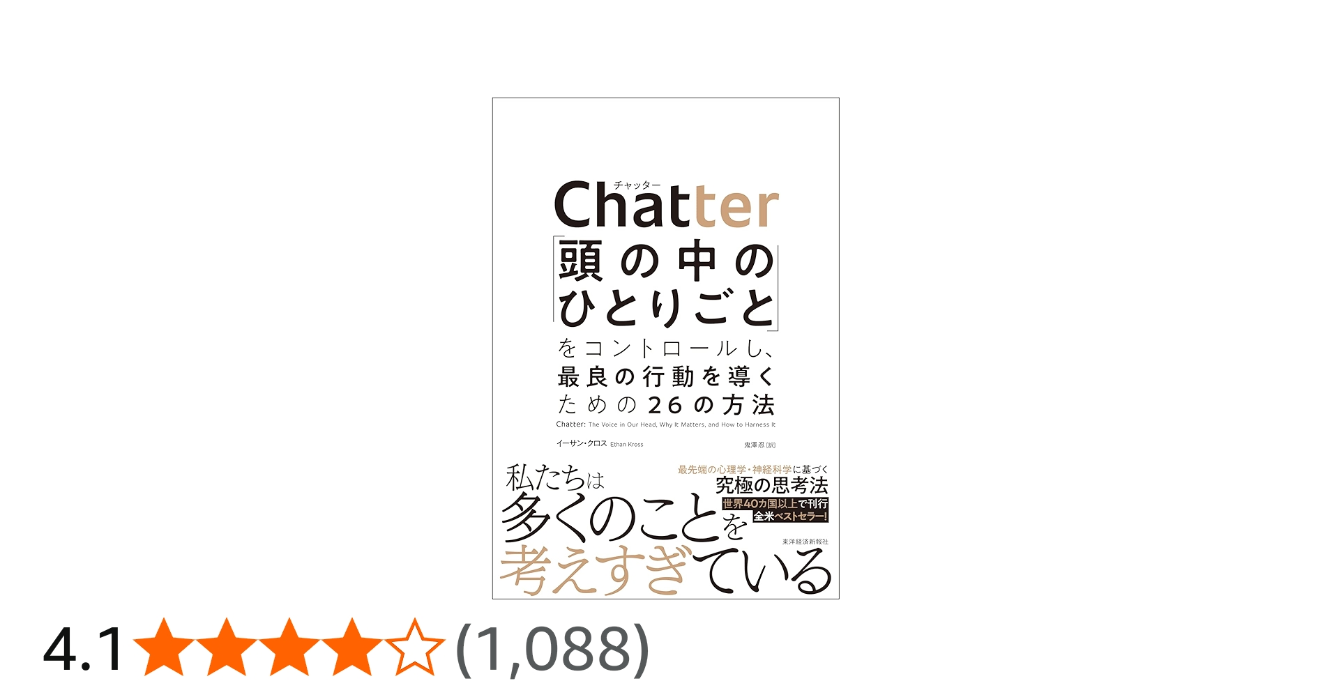「Chatter(チャッター)―「頭の中のひとりごと」をコントロールし、最良の行動を導くための26の方法」イーサン・クロス (著), 鬼澤 忍 (翻訳)東洋経済新報社