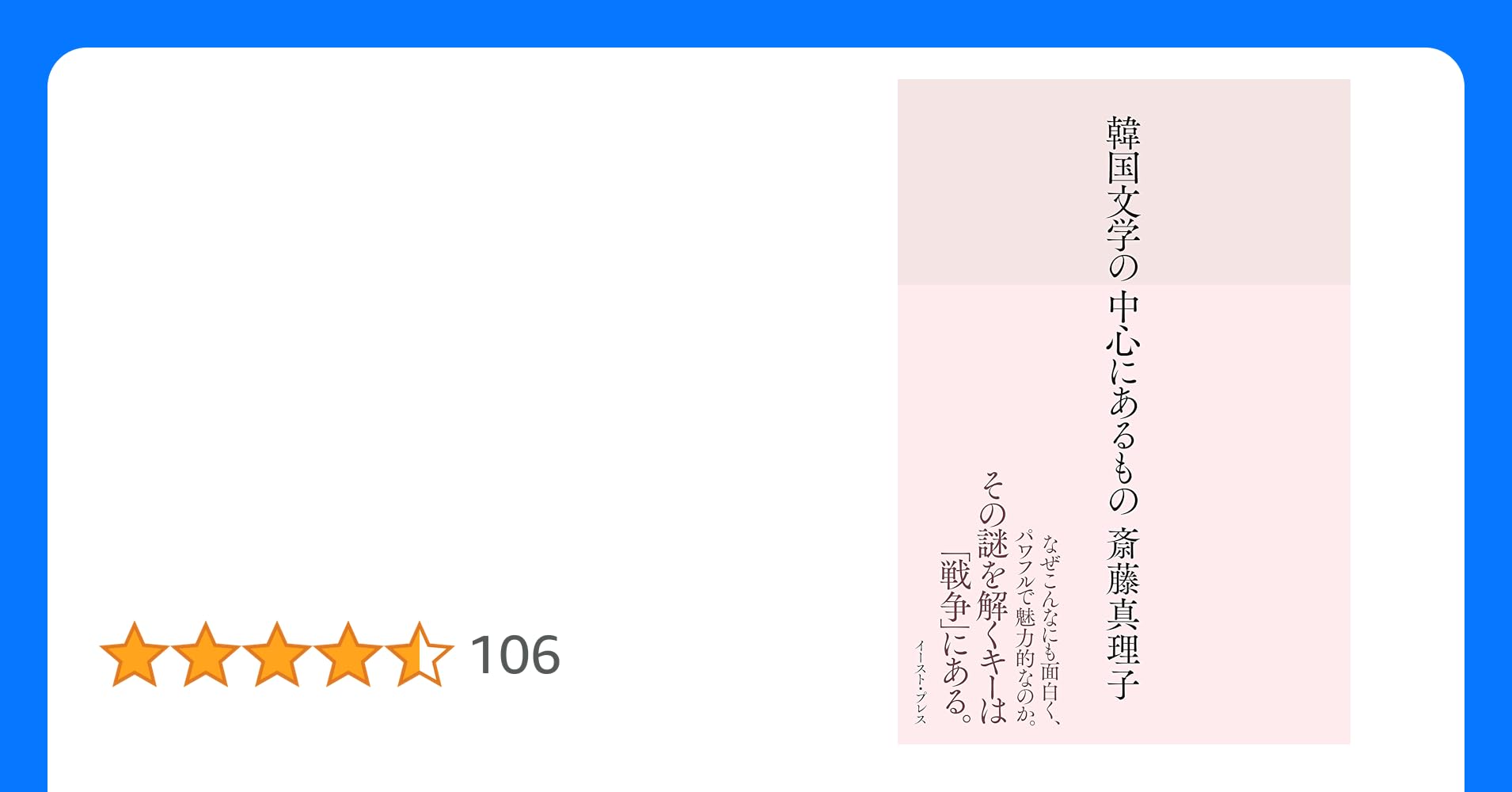 『韓国文学の中心にあるもの』斎藤真理子 (著)イースト・プレス