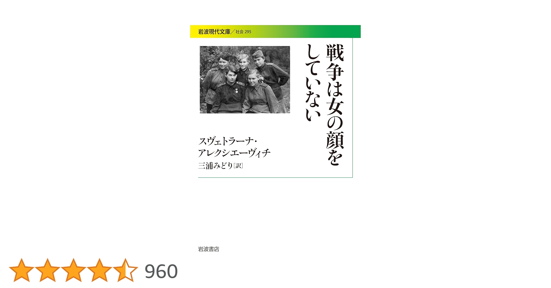 - もんざ「戦争は女の顔をしていない」 (岩波現代文庫) スヴェトラーナ・アレクシエーヴィチ (著), 三浦 みどり (翻訳)