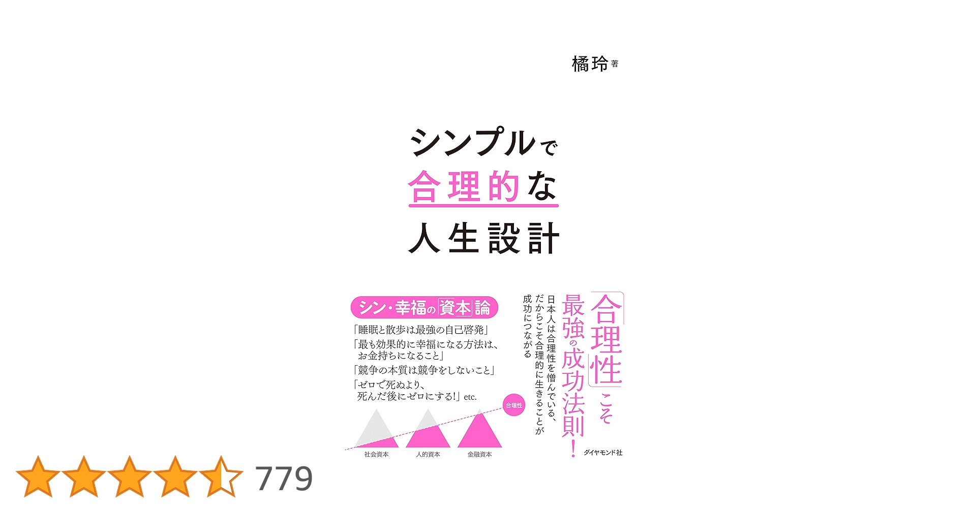 今回は、「幸福」な人生を最適、効率的に達成するための「成功」へのアプローチについて「合理性」という横軸を3つの資本に加えることで新機軸を打ち出した。人生はトレードオフの連続でそれ故に選択が重要になる。同じ成果ならリスクが少ないがよいという「リスパ」など魅力的なキーワードを配しながら、制約の多い現代社会を生きていく上での「合理性」と「幸福」について追及する書籍。