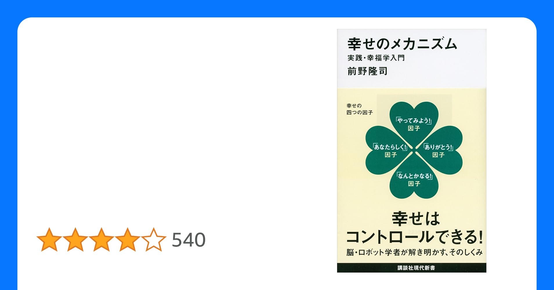 - りんさん「幸せのメカニズム 実践・幸福学入門」 (講談社現代新書) 前野隆司 (著)