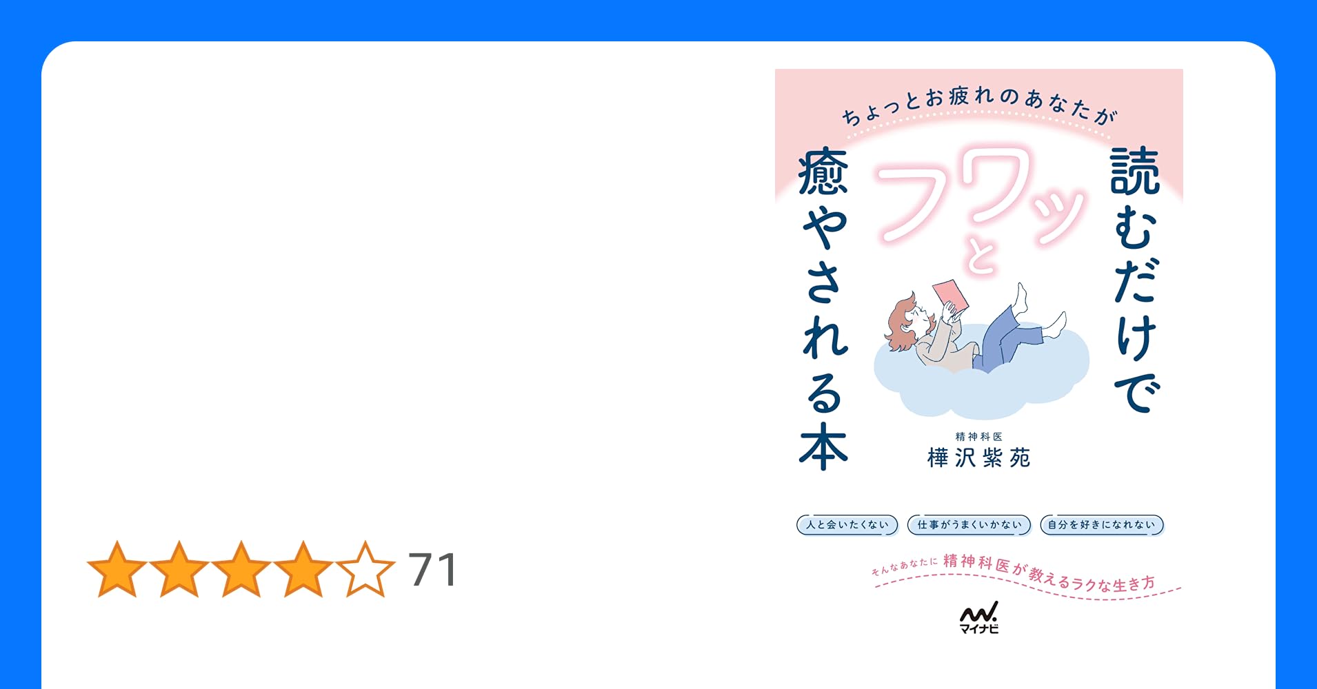 - にしやまさん「ちょっとお疲れのあなたが読むだけでフワッと癒やされる本 精神科医が教えるラクな生き方」樺沢紫苑 (著) マイナビ出版