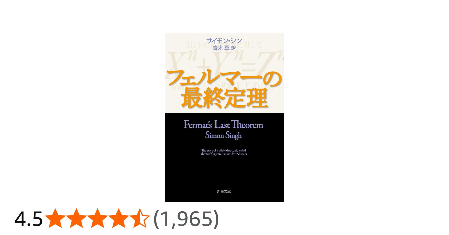 <内容:アマゾン商品説明より> 「フェルマーの最終定理」 (新潮文庫) サイモン シン (著), Simon Singh (原名), 青木 薫 (翻訳)