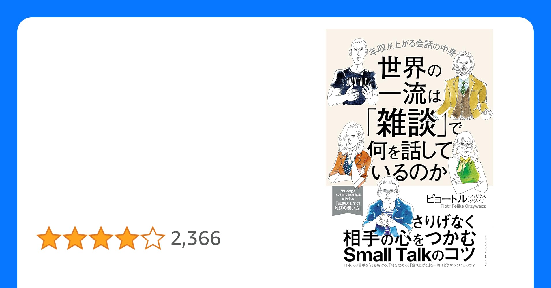 - もんざ 「世界の一流は「雑談」で何を話しているのか 」ピョートル・フェリクス・グジバチ (著) クロスメディア・パブリッシング(インプレス)