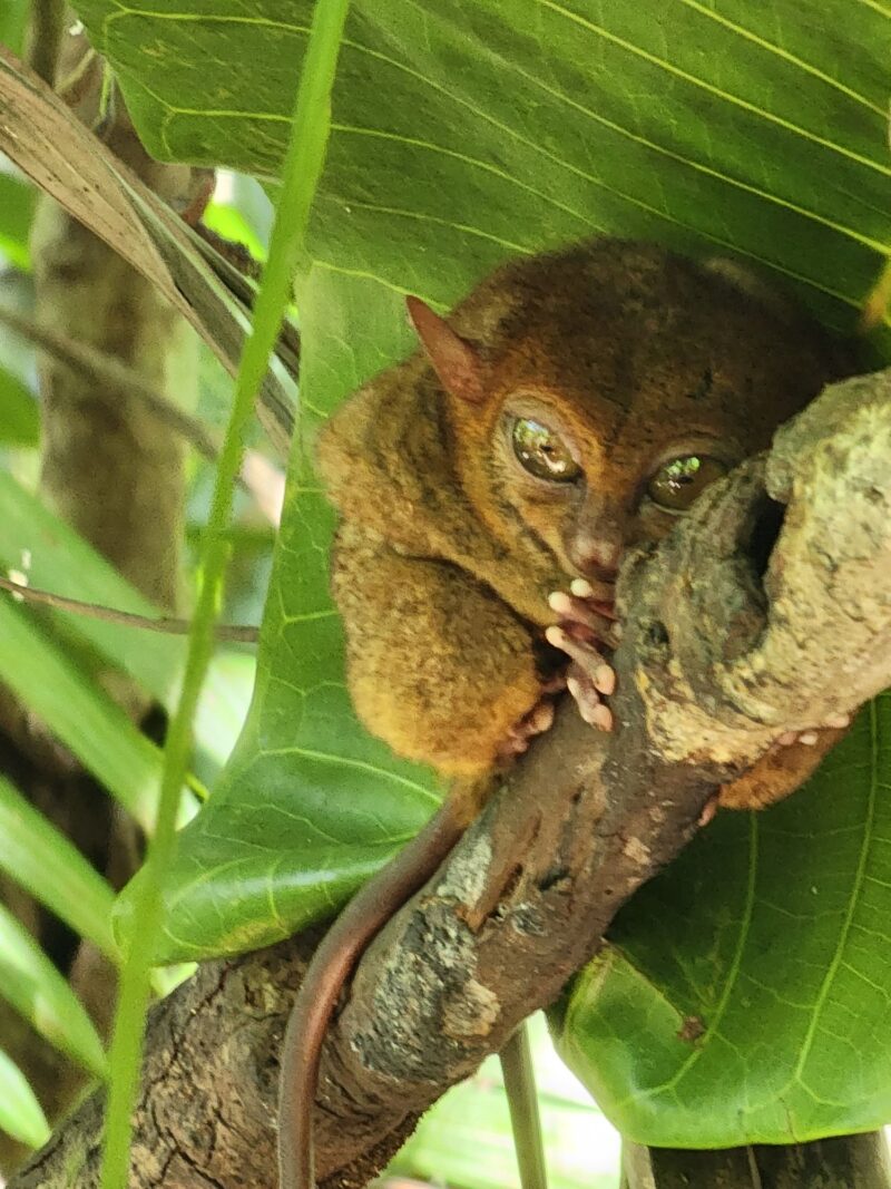 動物園のスタッフの人にお願いすれば、ターシャが眠っている木と一緒にスマホで写真撮影もしてくれます。(入場料とは別でチップを50ペソほど渡してました)