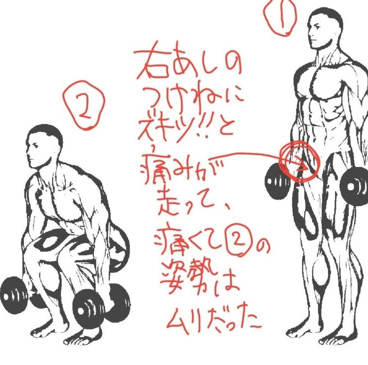本日スクワット ダンベルをしていたら右足の付け根に鋭い痛みが走って、しゃがめなくなりました。