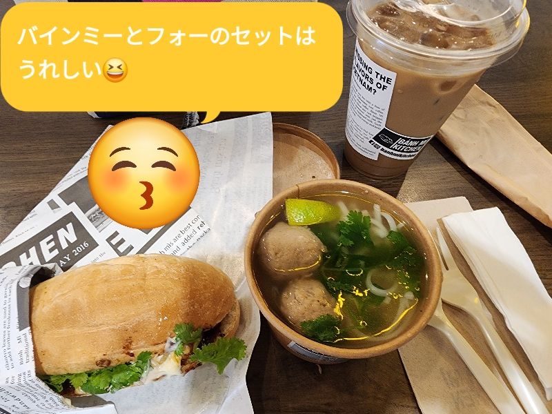 食 Eating Habit昨日のランチはミニ バインミーとお魚のつみれ入りミニフォーとベトナムコーヒーのセット299ペソにしてみた。