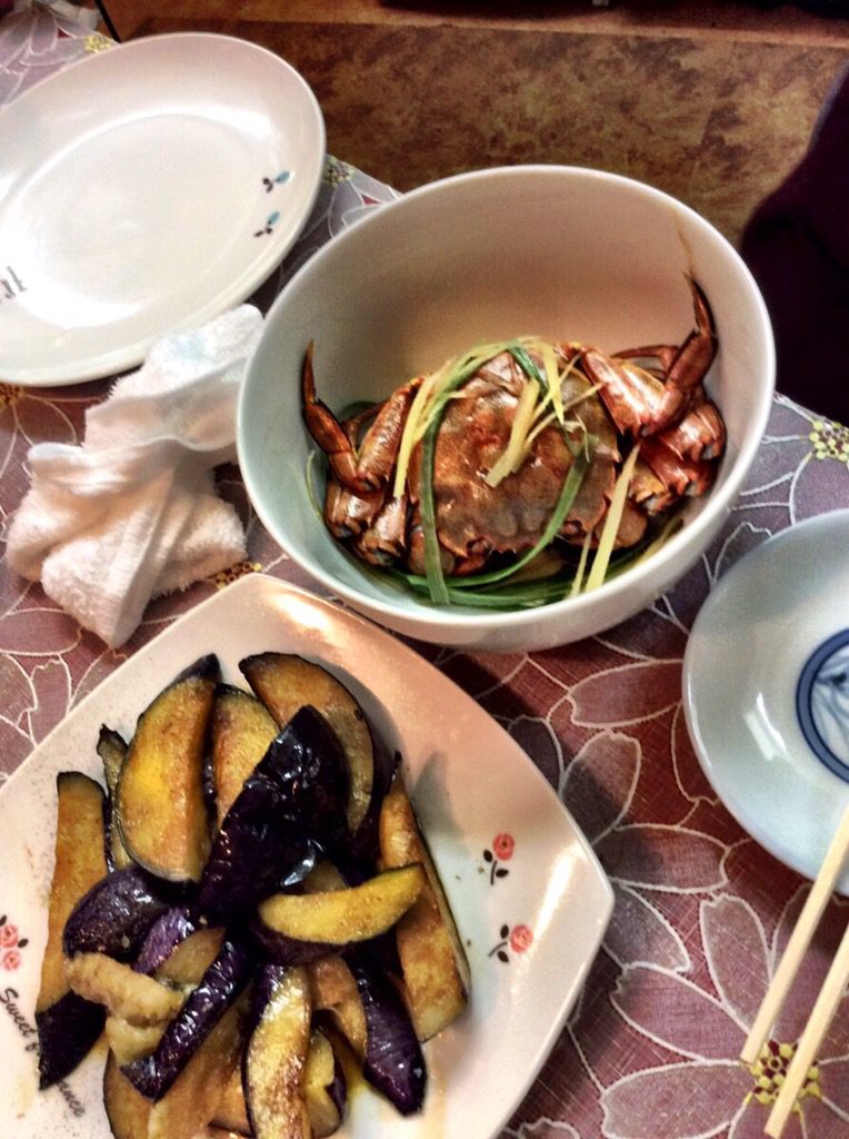 最近のお気に入り「もち焼売」(餅米に豚肉が入ってる肉ちまきが焼売の形になっている)とジャスミンハイで友人と寛いでいたら、女将さんが上海蟹の話を始めました。シーズンになったので、常連さん用に少量だけ仕入れていて、今日くる予定の最後のお客さんを待っているのだと。