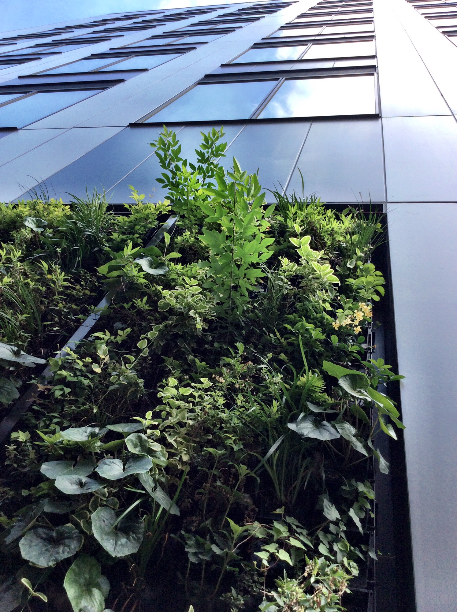 Recently new building created near my office. That is my favorite one now because that has the weird walls. It has soil it saturated with moisture, and several kinds of greens planted, Ivy, Fern, Gardenia, Chlorophytum etc. Firstly, my eyes obsessed the unnatural sight, and I was quiet sauntering near the wall. My eyes savor that balance of beautiful green until enough.