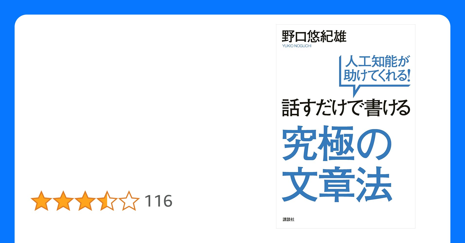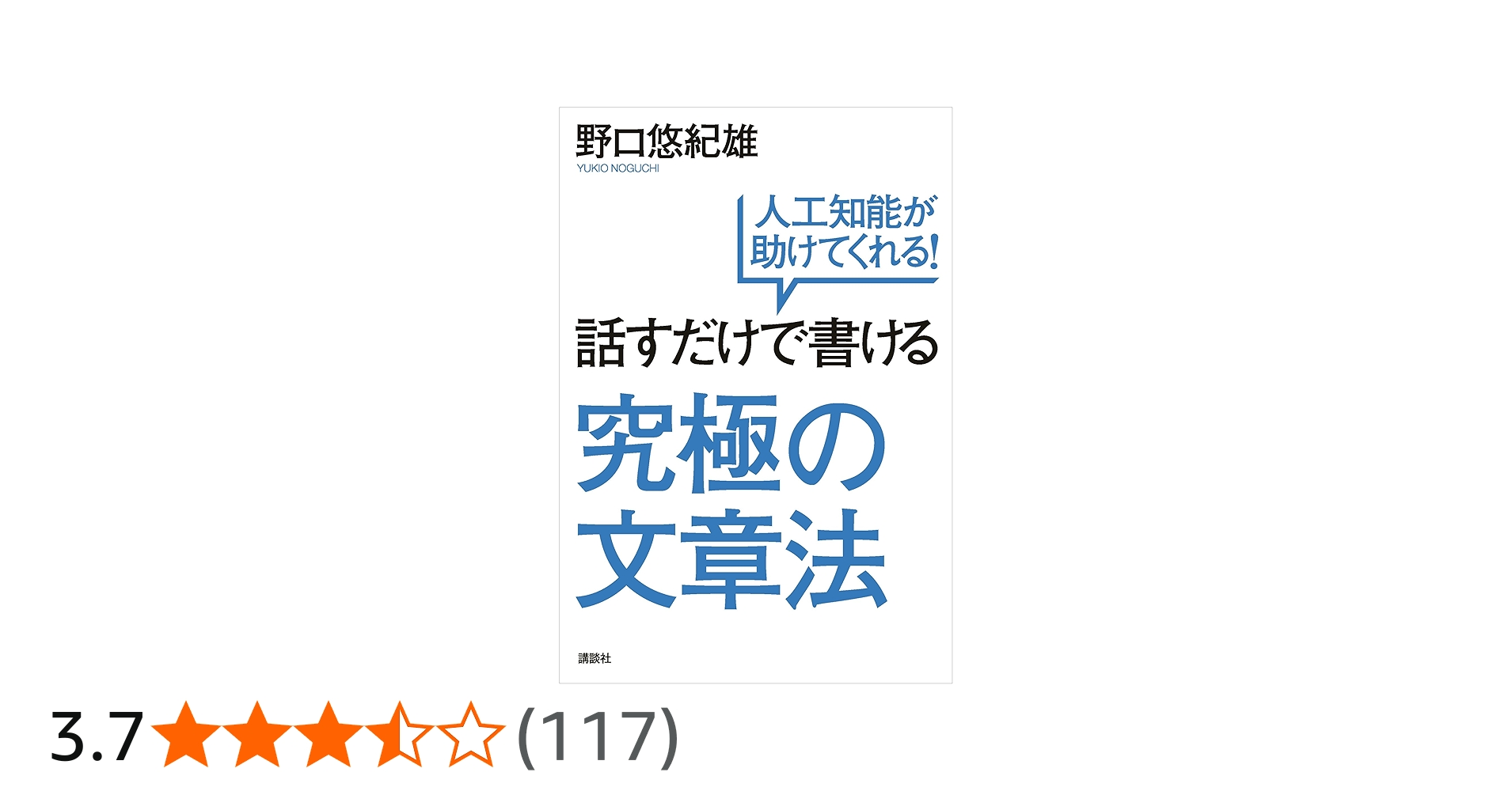 「話すだけで書ける究極の文章法 人工知能が助けてくれる!」野口悠紀雄/川越きゅうりさん