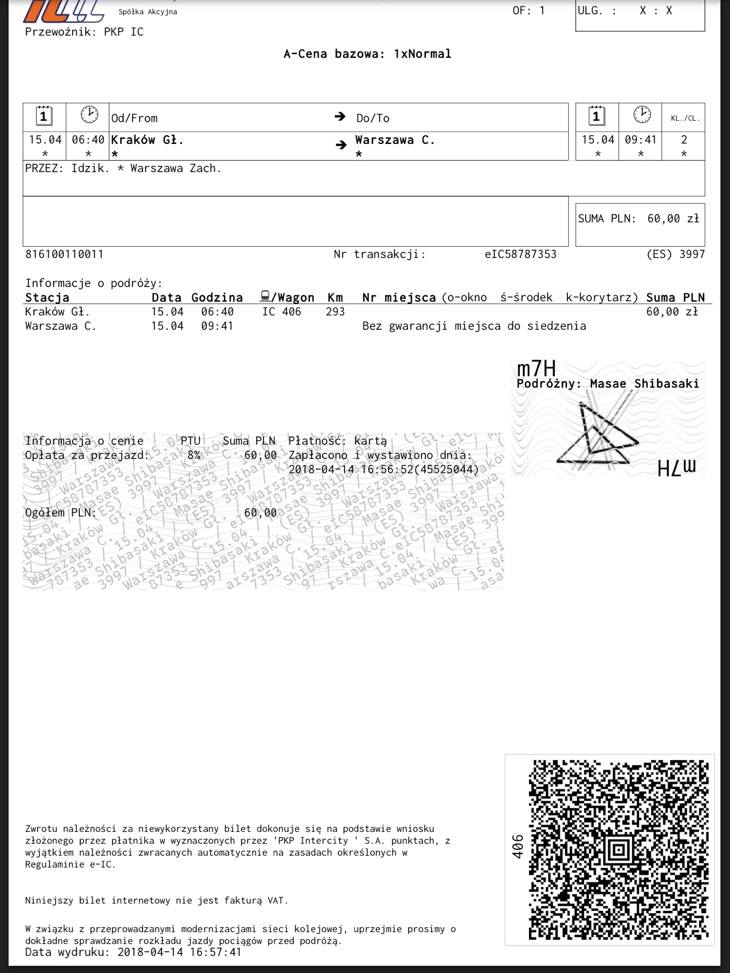 オシフィエンチム(アウシュビッツ博物館のある地域)からワルシャワ(ポーランドの首都)まで、クラコフ(ポーランドの京都)で1回乗り換え継ぎが必要で、合計5時間近くの移動時間が必要です。日曜は18時からクラシックコンサートを予約していたのですが、6月に日本を訪れる予定のイタリア人の方と13時に人気レストランでランチの約束もしました。そのうえ、日本語を学習中のホストと11時から宮殿美術館に行くという約束も追加したので、のんびり出発したのでは間に合わないことに気づいたのです。