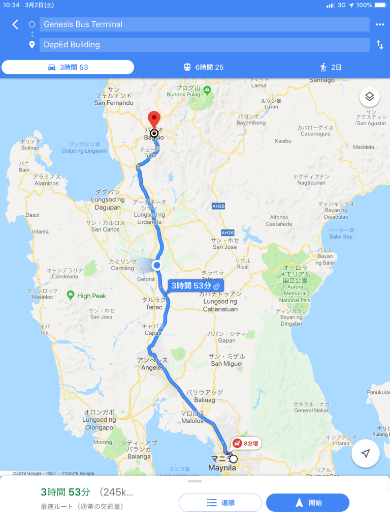 ほぼ予定どおりの時間に自宅を出て、徒歩10分のバスターミナルへ移動。クバオ市にある長距離バス(ジェネシス)のターミナルまで、スムーズにいけば路線バス+徒歩で45分程度のはず。しかし、Googleマップやsakay.phというアプリでチェックしていたにも関わらず、乗車するバスを間違えた。2月24日(日)に経路の確認をしようと下見にいったときは、バスはしっかりターミナル内に停車して乗客を待っていたのに、土曜のこの時間帯は、道路上にたくさんのバスが次々にやってきて、すーっと路肩によってきて何人かの乗客を降ろし、また何人かの乗客が乗り込んで、あっという間に走り去ってしまう。フロントガラスに行く先が書かれた文字は見えるけれど、いまいちよく見えない。クバオは主要な経由地だし、乗車する人が必ずいるはず、と考えて、クバオの文字が見えたバスに急いで乗った。出発の1時間前にはターミナルで待機していてね、という注意事項がダウンロードしたチケットに記載されていたし、渋滞してはいないと思うけれど、道路状況がどんなものか分からない。