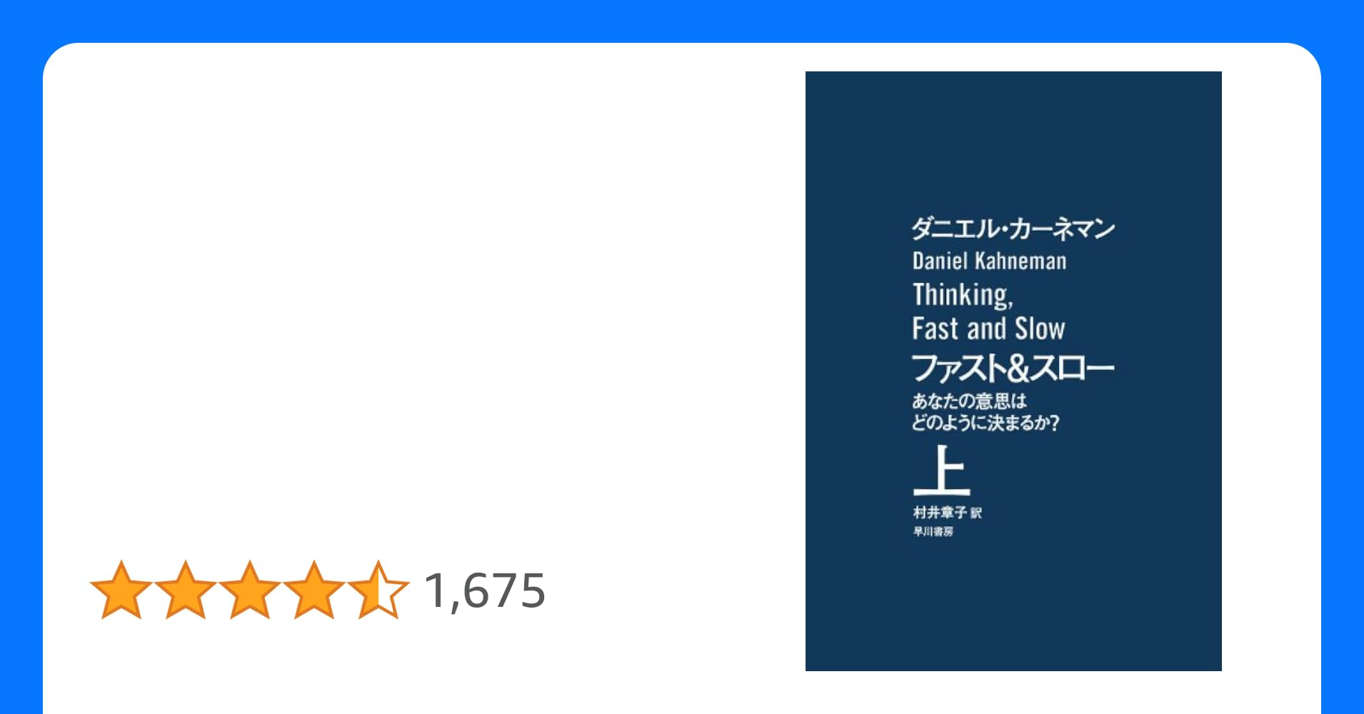 久しぶりに純文学読書会のほうも開催します。課題本は、 「ファスト&スロー」ダニエル・カーネマン (著) です。