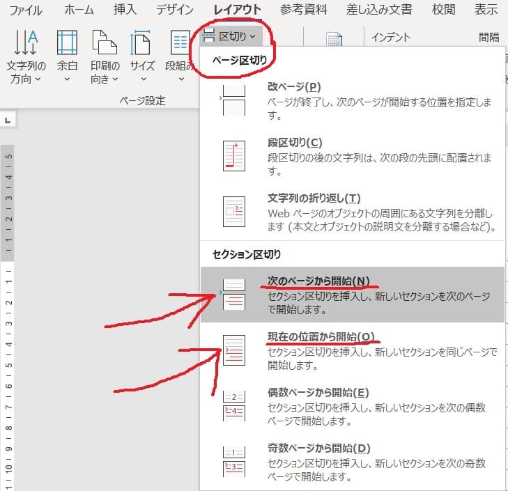 実は「セクション区切り」という機能を使ったことがなくて、役割が全く分かっていませんでした。