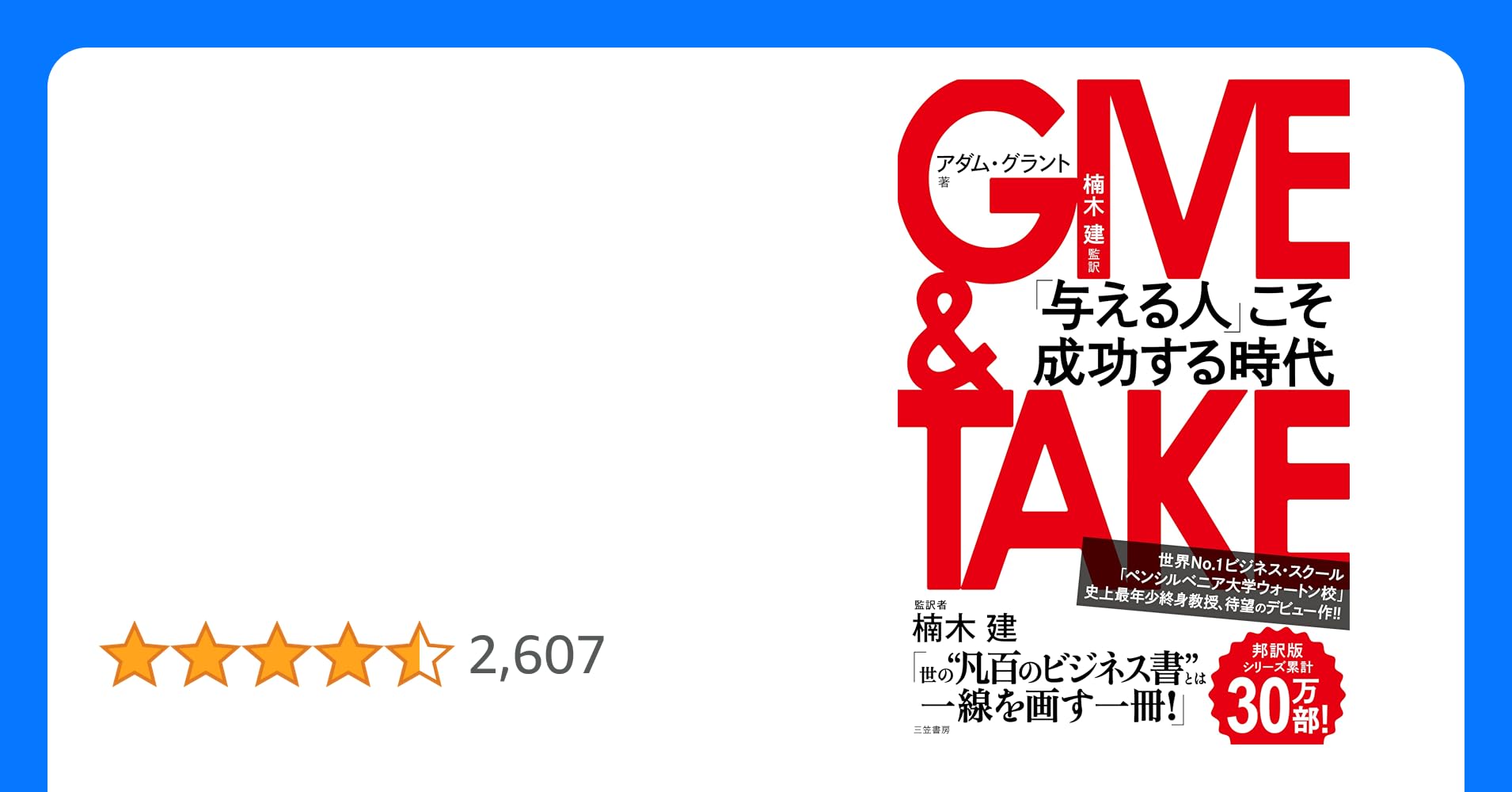 2.にしやまさん『GIVE & TAKE「与える人」こそ成功する時代』 アダム・グラント著 楠木健 監訳