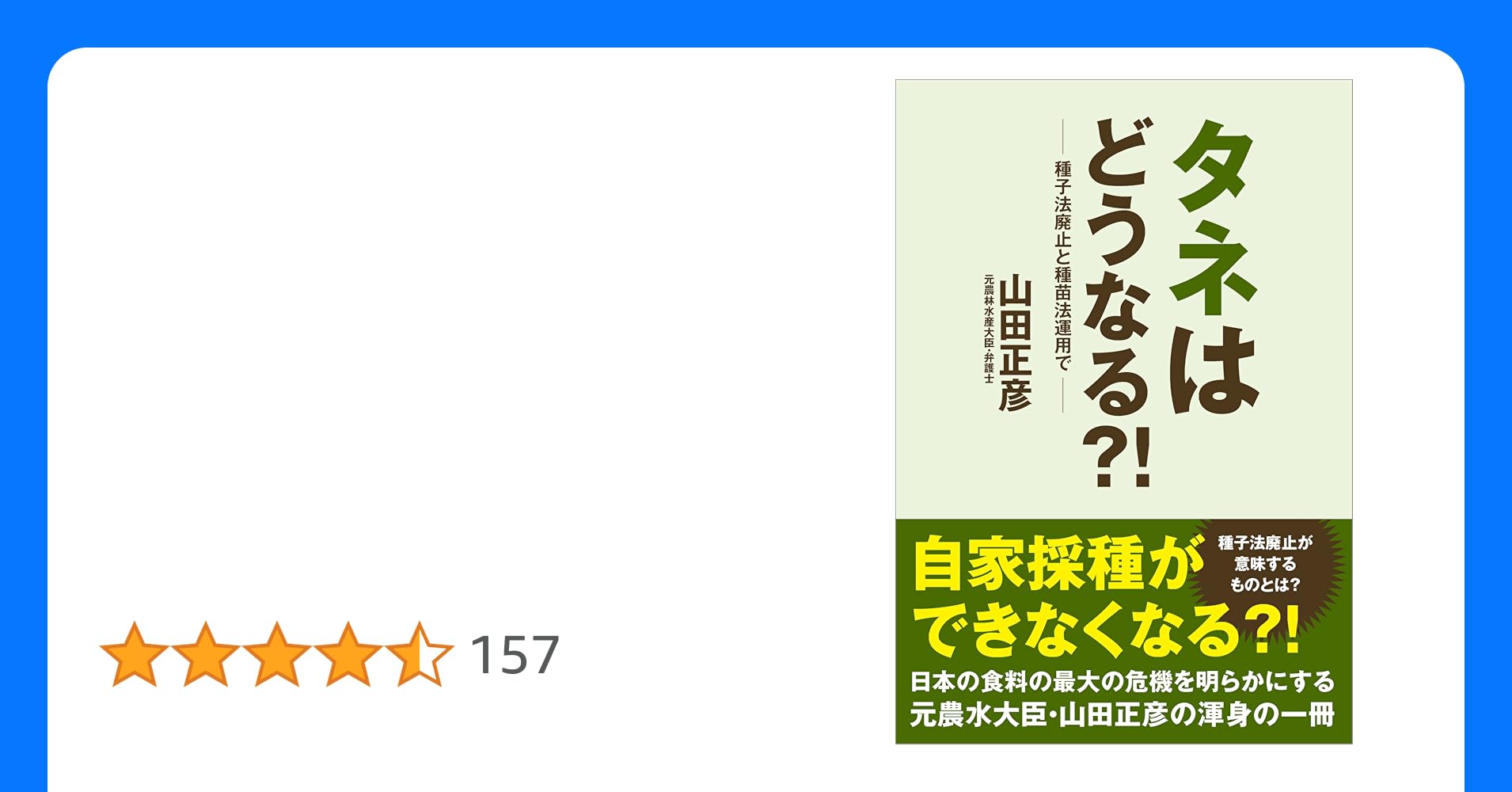 8.ちかさん「タネはどうなる?!: 種子法廃止と種苗法適用で」山田 正彦 (著)