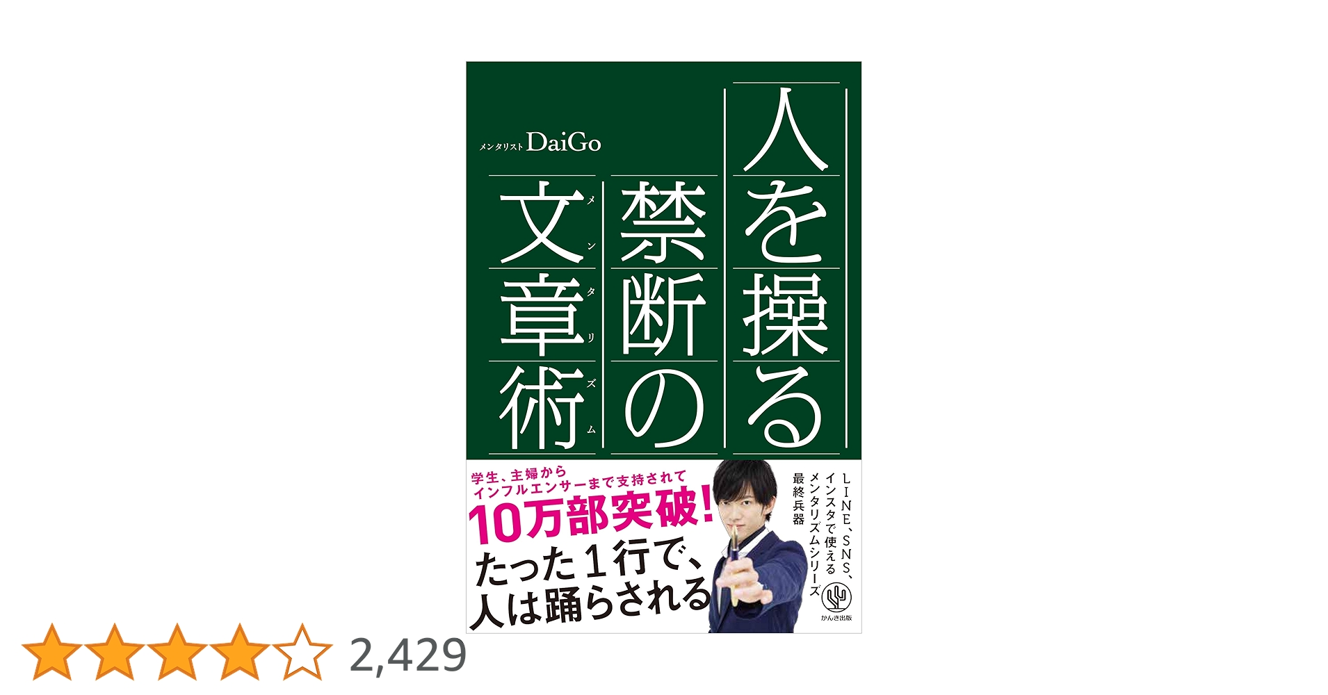 メンタリストDaiGoの、人を上手に誘導するパフォーマンスを支えているのは、人間の心理的特性についての膨大な知識量と実践の量である。本企画では、メンタリズムの得意とする「人心掌握」「大衆煽動」のエッセンスを文章に応用し、読み手の心を自在に操...