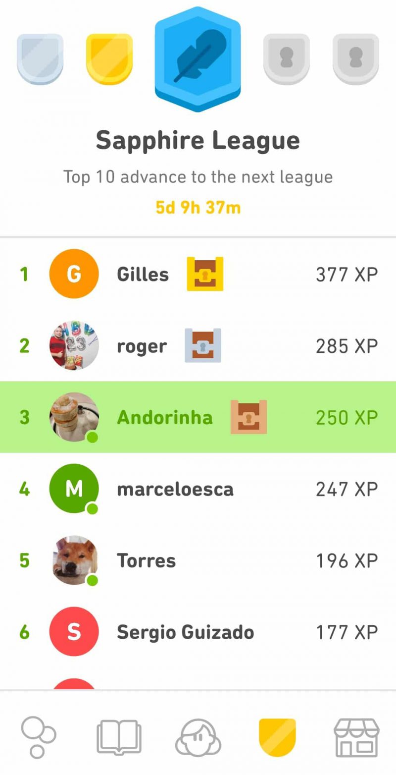 最初のうちは、空いた時間に5分とか遊んでいただけなのですが、1週間ぐらい続けていると、徐々に欲が出てきました。私自身は、競争心は強くないほうだと思うのですが、同じぐらいのXP(得点)の人をフォローすると、●●さんに記録を抜かれたよ、とかメッセージが入るんですよね。
