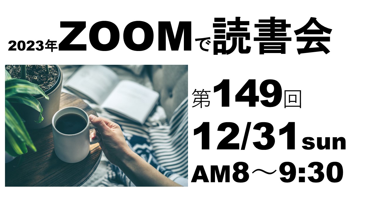 9. 読書会(勉強会) 第149回 ZOOMで読書会のご案内(2023/12/31 sun 8:00am) 12月に読んだ本の感想を教えてください。みなさまとお話できるのを楽しみにしております。 申し込み方法 お申込みはこちらからどうぞ(定員6名) Meetupからもお申込みいただけます。申込み後、24時間以内に自動返信メールが届かない場合は迷惑... 2023.12.10 9. 読書会(勉強会)カウントダウンコラム