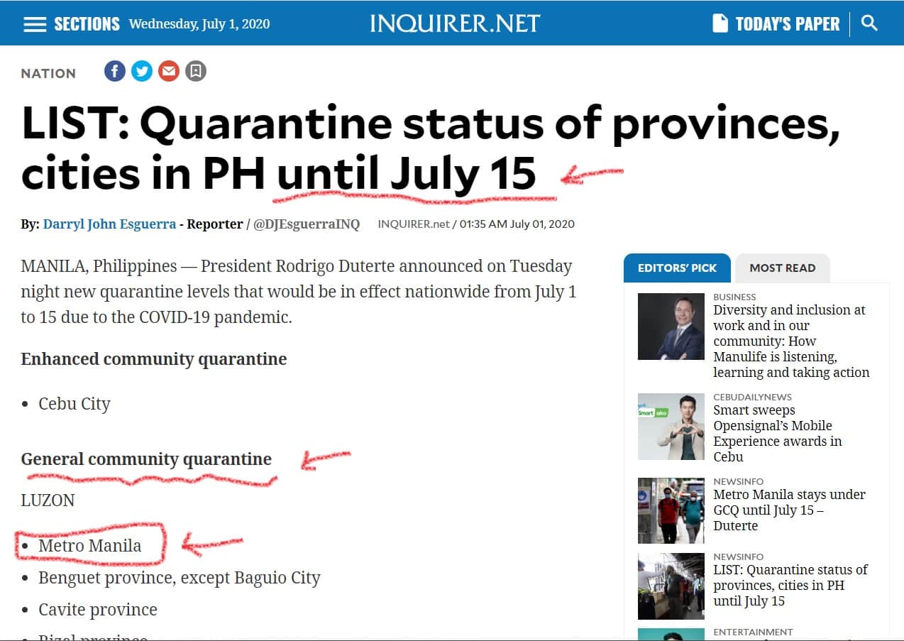 8.1. ふとした気づき またGCQが延長 7月15日まで 6月30日までの予定だったGCQ(一般的なコミュニティ隔離措置)が延長されました。毎回思うのですが、ギリギリまで決定を発表しない方針をフィリピン政府は変えられないのでしょうか。方針が発表されたのは例によって6月30日の夜中だったらしい。LI... 2020.07.02 7. 哀 Sad8.1. ふとした気づき8.2. ふりかえり Retrospective